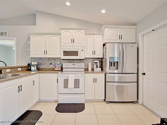 This beautifully updated 3-bedroom, 2-bathroom home offers a seamless blend of modern style and comfort, making it truly move-in ready. Inside, you'll be welcomed by vaulted ceilings that create an open, airy feel throughout the living spaces. The living room features plant shelves, perfect for displaying your favorite décor, while the addition of modern barn doors enhances the home's stylish appeal. The kitchen is a standout feature, boasting crisp white cabinetry, a tasteful tiled backsplash, and sleek stainless steel appliances that cater to both form and function. This kitchen is designed with the home chef in mind, offering plenty of counter space and storage. The split floor plan ensures privacy, with the master suite set apart from the other bedrooms. This spacious master retreat includes an ensuite bathroom with a walk-in shower, a vanity with ample storage, and a walk-in closet, providing a private and serene space to unwind. The additional bedrooms are generously sized, with large windows that let in plenty of natural light. The guest bathroom is equally well-appointed with modern fixtures and finishes. Throughout the home, you'll find durable tile flooring, which is not only easy to maintain but also perfect for families with children or pets. The expansive screened lanai offers a peaceful spot to enjoy your morning coffee or entertain guests, all while overlooking the private backyard. This home's interior is thoughtfully designed to meet the needs of modern living, combining practical features with stylish details that make it a true gem. The property features a new metal roof installed in 2019 and a spacious screened porch added in 2018. The home includes a whole-house water filtration system, a lawn irrigation system installed in 2020, and a stylish paver patio and sidewalk also added in 2020. One of the standout features is the impressive 32x32 reinforced metal pole barn, built in 2018, which includes concrete flooring and electricity—perfect for storing an RV, cars, mowers, and more. This home provides a serene, country-like setting while still being just minutes from town conveniences. The side-entry two-car garage, along with the versatile pole barn/garage/workshop, offers ample space for all your toys and hobbies, including a 10-foot door to accommodate a camper or small RV. With durable tile floors throughout, this home is ideal for families with children or pets. Enjoy the peace of mind that comes with a new metal roof and no carpet in sight. There's truly nothing left to do but move in and start living your best life!
