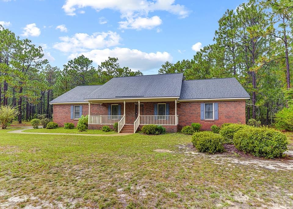 Large all brick home on 5 acres only 1.3 miles from I-26 at 129 exit. This home features formal dining, owner's suite, masonry fireplace, FROG, covered front and screened rear porch, 2019 roof and additional detached garage.