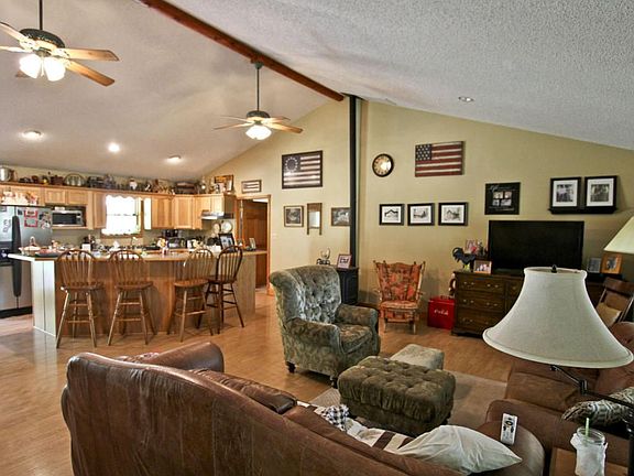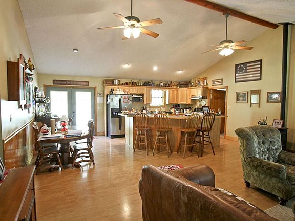 2158 SF on 5 ac within 20 min of Spfld, Rogersville and Ozark.24x30 Outbuilding.Custom built in 2000 with 1700 SF on main level, open floor plan and bonus room over garage for total of 2158 SF.Log siding on the home (with meticulous maintenance),is so appropriate for the location; nestled among trees in a peaceful setting.There is laminate wood flooring thru most living areas/dining and hallways.4 BRs,3 Baths,2 car attached gar and ''slider doors'' for additional parking in the outbldg.The outbldg has concrete floors,wired 220 electric,a covering of 12x30 (for parties, entertaining),and wood burning stove with flue included.Very clean home with the ''sought after'' country, covered front porch, treed and open lawn,5 open ac for livestock,if preferred and hard surface roads.