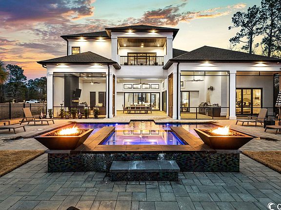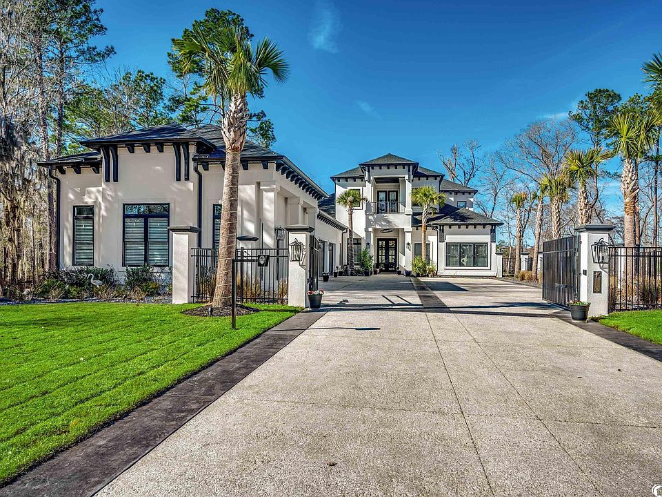 What an opportunity to own this modern 6-bedroom, 7-and-a-half bath home with a 5-car garage sitting on a 1.2-acre lot directly on the Intracoastal Waterway in Cypress River Plantation!! This home has every feature, bell, and whistle you could possibly ask for in a home. When you enter the Wi-Fi gate passcode, you will immediately notice that the home is fully fenced in with a top-of-the-line 16 camera security system. Walking in the custom vault 10-foot double doors and 16-foot zero corner sliders, you get the Grande feel without losing sight of the view. Featuring 12', 14', and 16' ceilings, extensive trim detail, and lighting throughout the entire home, this property does not lack the wow factor! Living room features floor to ceiling costumed tiled gas fireplace and built in cabinets. A true Chief's Kitchen with a Pro appliance package that includes a 30" refrigerator, a 30" freezer, and a 48" gas stove with multiple ovens and a wall oven! The spacious home becomes even more convenient by underlighting cabinets with decorative glass, a pot filler, and an extra beverage center in the dining area. The master bedroom features a slider to a private covered and screened-in patio space. You'll have your own spa-like bath with a freestanding tub and a massive walk-around tile shower with multiple shower heads. Massive vanity space, a make-up area, and ample cabinet space. The master walk-in closet with custom shelving throughout is another must-see feature of this home. This home includes multiple living spaces, a first-floor in-law suite or game room, as well as laundry rooms for both levels! The upstairs living area is fully equipped with a built-in wet bar and beverage center. Every single bedroom includes power shades and has its own custom-styled tile shower. The home has a Wi-Fi-controlled 5-car garage with epoxy flooring and two 14-foot-high bays for ample storage space; it can comfortably park 15 cars. Some additional features of this home include 2 hot water heaters, spray foam insulation, soffit lights, and cat6 wiring throughout the home. Walking outside turns into an entertainer's dream with views of the natural part of the Intracoastal Waterway that are truly indescribable. Beautiful covered outdoor space with power shades, a dining area, living area with a gas fireplace mantel, an outdoor TV, a beverage center, and a grill! Lavish pool experience including deck jets, vibrant fire bowls, a saltwater generator with a heater, a tanning shelf, a full pool bathroom, and pool storage. Additional outdoor features include a paver fire pit area! Walk down your very own pier to get to your personal dock, with a 12,000-pound boat lift that has electric and water. Home is in a gated community that is equipped with wider streets, sidewalks, and street lamps, perfect for evening strolls. Enjoy a game of tennis with your friends. From basketball courts to fitness centers to walking paths, this community truly has it all! It even offers a private boat landing as well as boat storage and day docks on the waterway. This newly built 2021 modern design home with this wide waterway property and the house features a true one-of-a-kind property that will not last long. Schedule a private tour today!