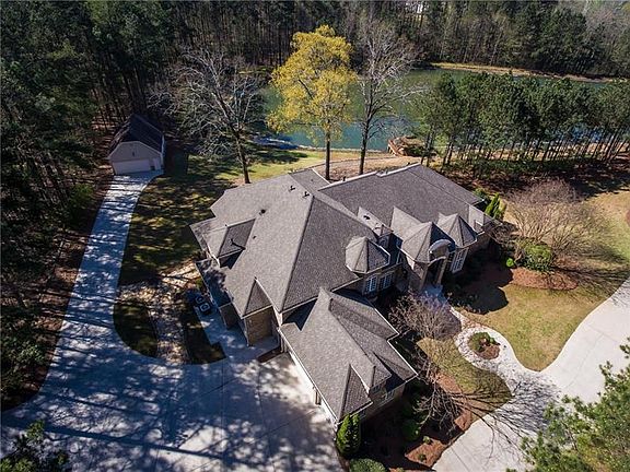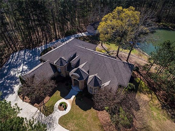 Welcome home to this one of a kind executive beauty, situated on 3.3 acres! Through the double doors, you are greeted with travertine & marble floors, exquisite details & custom wood features. Main level features a formal living room with fireplace, & large dining room with stunning ceiling, connecting to the kitchen by a butler's pantry w/ wet bar & wine refrigerator. Chefs kitchen offers an abundance of cabinets & counter space, & includes a trash compactor, warming drawer, built-in refrigerator, cooktop w/ both electric & gas features, double ovens, & microwave. Convenient laundry, just off the kitchen, offers additional storage options. The two-story family room is the heart of the home & is perfect for entertaining. Two generous sized bedrooms- each with their own full bath & walk-in closets. Gorgeous office features wall of windows, tongue & groove ceiling, walk-in closet, & half bath. Oversized owners suite with built-in dresser & luxurious ensuite bath complete with double vanities, tons of storage, a glass enclosed shower, jetted tub, & huge walk-in closet. Rear stairs take you to an unexpected loft area, overlooking below, which would be perfect as a playroom, flex space, or reading area. Upper floor also offers a large bonus room & oversized bedroom with full bath & walk-in closet, & heated/cooled storage area (additional unfinished attic space offers more storage). Spectacular veranda runs along the rear of the home. Backyard is a true oasis with serene setting, overlooking the pond & outdoor kitchen area. Additional detached garage offers space for multiple cars & extra attic storage. This amazing property is a rare find- the feeling of being remote, yet still conveniently located near shopping, dining, & so much more!
