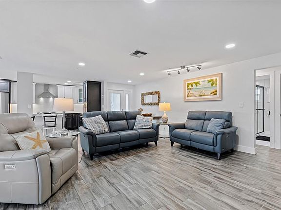 Welcome to this stunning 3-bedroom, 2-bath, 1-car garage pool home in the desirable boating community of Punta Gorda Isles. With 85 feet of waterfront, a concrete dock with water and electric, and a 4,500 lb. boat lift, you’ll enjoy effortless powerboat access to Charlotte Harbor and the Gulf of Mexico. Need your new home furnished? Opportunity for living room, dining room and twin bedroom furniture. Step inside to a beautifully updated modern interior featuring an open floor plan, calming neutral décor, tiled flooring, and expansive water views through large double sliders. The contemporary kitchen offers custom cabinetry, quartz countertops and backsplash, a spacious island, and all-new stainless steel appliances. An additional sitting area makes the perfect spot for a home office or reading nook. The private owner’s suite features two closets and a spa-inspired bath with dual sinks and a glass walk-in shower with stone accents. Two spacious guest bedrooms and a fully updated guest bath provide comfort and privacy for family and visitors. Enjoy outdoor living at its finest with a paver pool deck, heated saltwater pool, and a panoramic screened lanai overlooking the wide canal. Additional upgrades include a new metal roof, impact windows, new A/C system (2021) including ductwork, tankless Instahot water heater, new dock and lift (2019), and lush tropical landscaping. Just minutes from Fishermen’s Village, the Yacht Club, and historic downtown Punta Gorda, this location offers convenient access to waterfront dining, shopping, parks, and year-round community events. This move-in-ready waterfront home delivers the Florida lifestyle you’ve been looking for.