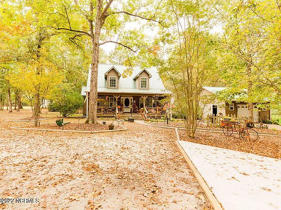 Country charm at it's finest! This rustic homestead is tucked back and surrounded by mature trees, peace, and quiet. Sit on the old fashioned, fully covered front porch and enjoy all things that nature has to offer. Display your rocking chairs and seasonal decor to welcome your friends and family. The main level is an ''open'' floorplan. The spacious living room boasts a cozy fireplace with a visible loft area above. Custom shelving to display your favorite sentiments of days gone by. Beautiful triple vinyl windows accent the entire front of the home. The open kitchen has been updated with new cabinets and top of the line appliances, to include a refrigerator. True hardwood flooring on the main level. A large laundry room has been added to the main level for total convenience. Bedroom 1 features a beautiful view of the front yard and also has a walk in closet. The adorable stairway leads to a second level loft. The loft can be used as a playroom, study, or home office. The second floor master bedroom is very homey and snug with a barn door leading into a recently renovated master bath. The master bath features a custom, fully tiled separate shower. The master bedroom also features a walk in closet, a separate storage closet, and patio doors that lead to a second level deck. The back of the home also boasts a fully covered back porch. Enjoy morning coffee on the screened porch area or scramble up some eggs on the back porch griddle. This home is also complete with a fenced area for your fur family members and an above ground pool for summer days. There are two covered fire pit areas on the grounds for cool fall and winter nights. You are sure to master the S'mores! Such an amazing yard space to entertain guests young and old. A charming detached garage offers a half bath and plenty of extra storage and attic space. There's even another sizable custom building for your mowers. You must see this beautiful and unique property! Appointment only.