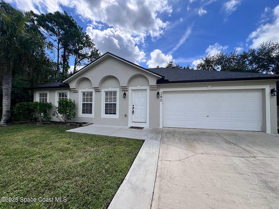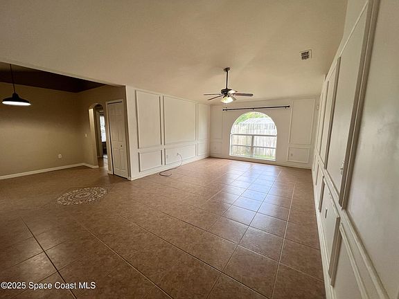 Welcome to this inviting 3-bedroom, 2-bath home in the heart of Palm Bay. With vaulted ceilings and an open, airy layout, this residence offers comfort, style, and room to breathe. The kitchen features solid surface countertops and well-maintained appliances, perfect for everyday living or entertaining. The spacious primary suite includes a walk-in closet, dual vanities, a spa-style shower, and a relaxing garden tub. Outside, enjoy a fully fenced backyard with a covered patio - ideal for peaceful evenings or weekend gatherings. Additional features include lawn and pest control included, a two-car garage, washer and dryer, and a location just minutes from shopping, dining, and I-95. Rental requirements: minimum 650 credit score, income at least three times the monthly rent, and no criminal background, evictions, foreclosures, or bankruptcies. Large pets may be considered with a pet fee. One-year lease term preferred. This lovely home is ready to welcome you