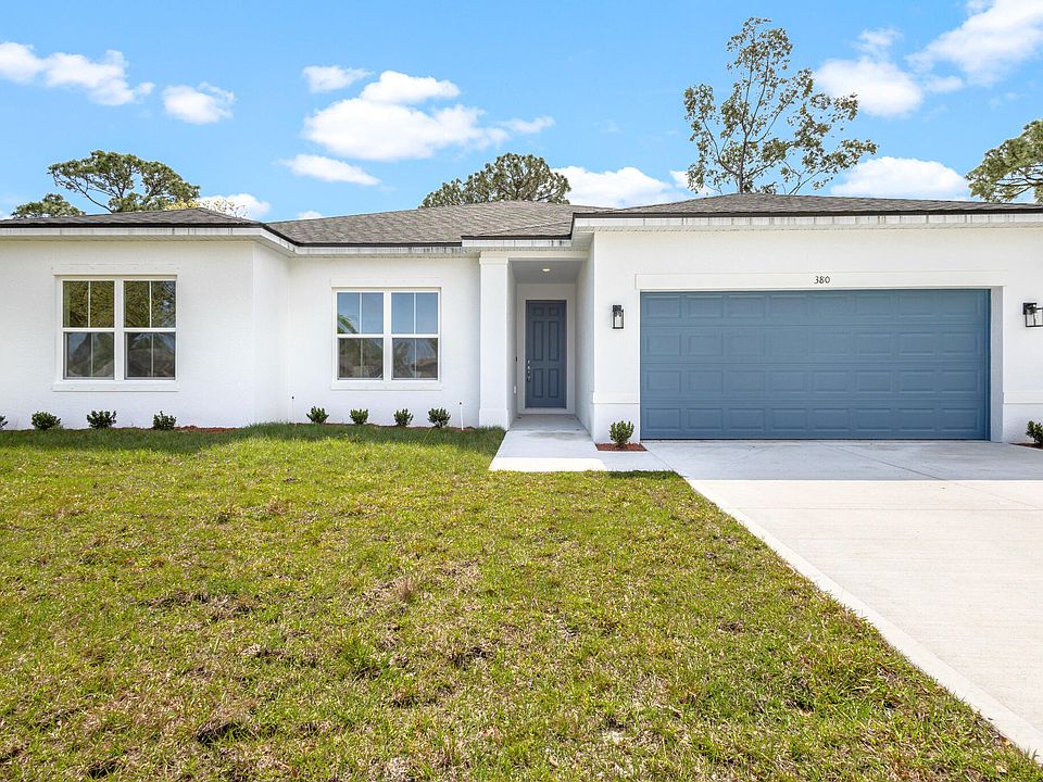 $1,500 buyer credit and comes with a 1-2-10 warranty! Move-in ready! Experience modern living in this exquisite 4-bed, 3-bath home on CITY WATER and SEWER located in the highly sought after NE Palm Bay. This home boasts a generous 2-car garage and a spacious open floor plan that invites natural light and easy living. In the kitchen, there are elegant granite countertops accompanied by 36'' soft-close hardwood cabinets and state-of-the-art Samsung stainless steel appliances. Durable Mohawk Revwood floors grace the main living area while the bedrooms are outfitted with plush Mohawk Top Card carpet for added comfort. With gracious 9'4'' ceilings, the design elements of this home are both functional and aesthetically pleasing.