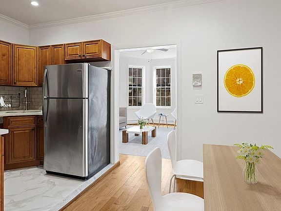 High level: 2 BR, 2 BA, 1000 sq ft sun-filled gut renovated, open floor plan, garden apartment, 4 minute walk to the 2, 5 subway stop . Complete 2020 renovation with new kitchen, bathrooms, new sheetrocked walls, refinished floors and 9' ceilings throughout this 1910 building. Quiet and safe E. Flatbush location just a 4 minute and 23 second walk to the Beverly stop on the 2, 5 trains. Apartment comes with washer-dryer. $2500 a month, 1-year lease (length negotiable). More detail: The front door opens into the vestibule on the parlor level with chic penny tiled floors. The apartment has an open floor plan for the kitchen, living room and dining areas. The generous living room has bay windows. The newly remodeled kitchen has maple cabinetry, quartz countertops, marble subway tile backsplash, and stainless-steel appliances including a dishwasher and washer-dryer. The tranquil master suite measures 10'8" X 13'10" and can accommodate a king-size bedroom set and boasts a luxurious en-suite bathroom with a high-end glass shower and a designer mosaic penny tiled floor. The spacious bedroom is south facing and sun-filled and measures 8'3" X 13'10", has an expansive closet, and looks out on the quiet back yard. This bedroom has the door that leads to the garden. The apartment has a private deck with steps down to the large private patio with a wooden fence surrounded by sylvan greenery. The deck is exclusive to this apartment. The garden is shared. A second contemporary full bath sits in the hallway. Throughout the home are newly refinished hardwood floors and new windows. Additional updates include new mechanicals throughout the building. The property is nestled on a peaceful residential block the heart of up-and-coming East Flatbush, a vibrant community with a plethora of shopping destinations, including Brooklyn Junction, as well as abundant international cuisine, Kings Theater, Brooklyn College, and access to the Beverly 2/5 red and green lines. *Note: most of the photos show furniture accessories that have been digitally placed. Furniture is not to scale and tends to distort the size of the rooms. *2nd note: Recent renovations have opened up the floor plan for the kitchen, dining and living areas.