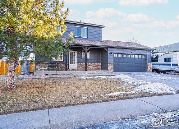 Delightful 2-Story! Main level features living room with gas fireplace, dining room & 1/2 bath. Sunny bright kitchen with large pantry, all kitchen appliances, corner sink & double corner windows. Upper level provides three bedrooms & full bath. Finished basement with large master suite, den, 3/4 walk-in shower & laundry. Updates include new carpet throughout, bathroom counters & sinks, exterior paint & some fencing. Large corner lot that sides to farmland. NO HOAs. Boat & RV parking. Newer hot tub included.