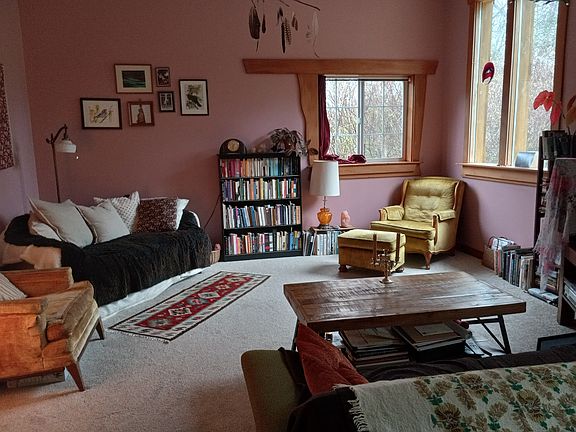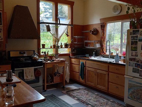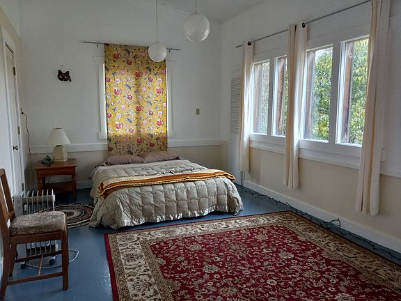 three rooms for rent: Room 1- has private entrance, lots of storage, closet, on main floor, large Room 2- bright, large, closet space, built in desk and shelving, sliding glass door, bathroom adjacent, on main floor Room 3- bright, carpeted, on second floor, closet, storage House comes partially furnished. One bathroom on main floor and a half bath on second floor. Large kitchen with plenty of cabinet and shelf space and gas range. Large living and dining room. Washer and dryer. Large garden, option to care for chickens on site, one block from beach/county park. Kind and quiet neighbors! Temporary, month to month lease, available Dec. 1 . No smoking, parking on site and on street. Pets considered on a case-by-case basis. Owner will maintain garden.