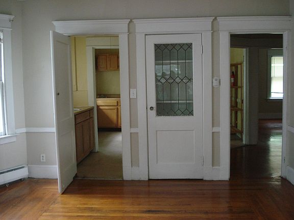 spacious with hardwood floors, working fireplace, eat in kitchen, formal living and dining rooms, built in leaded glass China cabinet, extra and large closets, huge, fenced yard, enclosed large porch, storage, all gas, off street parking, washer and dryer hook ups. Tenant pays for their utilities