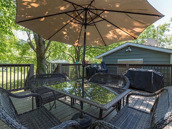 Luxury vinyl plank flooring throughout. 7'+ island with seating in the kitchen, stainless steel appliances with gas oven-range. Custom cabinets with some open shelving. Divided floor plan with primary suite consisting of walk in closet, double vanity, whirlpool tub and seperate shower. Main floor laundry. Full basement with rough in for a bath. 20 x 20 deck off the back for plenty of entertaining and enjoyment. Small shop/shed only 2 yrs old and an additional outbuilding. Very cool outdoor clubhouse/gathering space, heated and cooled, completely insulated with new electric. Additional pacel # 09-9.1-029-04-004-001.01 is also included in the sale. Call today to view!