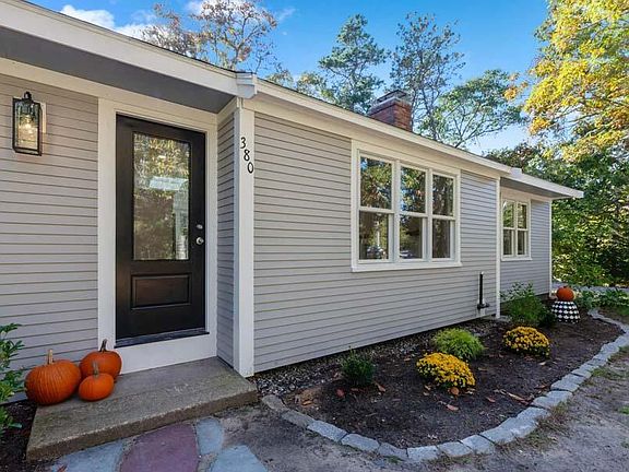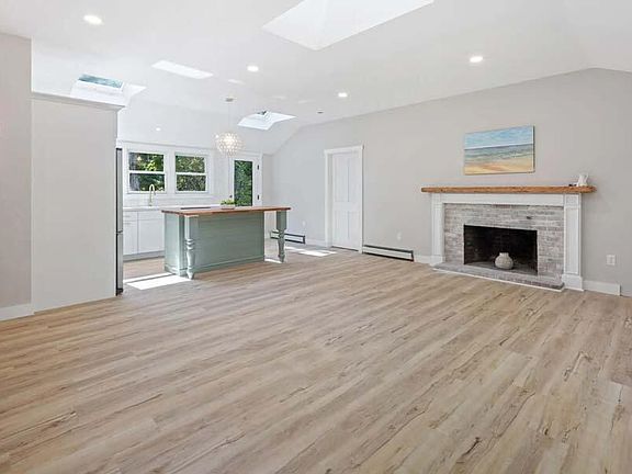 Completely redone top-to-bottom, with style, all on one level! Beautiful kitchen with white cabinets, custom teak island, Capiz shell tiled backsplash, quartz counters, stainless appliances, vaulted ceiling and skylights to let the sun pour in! Total of 3 bedrooms and 2 all new baths with stone counters and custom tile on the main level including primary bedroom with en suite bath. New luxury plank vinyl in Hickory throughout. Deck will be sanded and painted and backyard is large and private. All new: appliances, roof, siding, windows, doors, Azek trim outside, furnace, water heater, insulation, lighting, indoor trim, custom mantel, and most walls and ceilings. Additional new finished basement space with recessed lighting adds an additional 325 sq. ft. for total of 1,557 sq. ft. There will be nothing to do here but bring your furniture and move in. Close to Nickerson State Park trails and ponds, Captains Golf Course, bike trail, shopping, and Brewster Bay beaches. A few items are still being completed by sellers and will be done by closing.