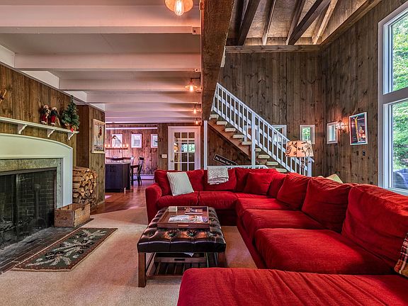 Welcome to Phelps Barn on Sachem. This home is a replica of the famous Phelps Barn, part of the historic Grafton Inn and currently used as the Inn's pub. There are large gathering spaces, perfect for entertaining, with two wood-burning fireplaces and a fun loft area. The kitchen has been redesigned and flows nicely into the dining room. The ski room entry has all the space you need to store your gear or prepare for the next run. The location is highly sought after and right on the green Sachem ski trail for true ski on - ski off. You can watch the skiers swoosh by from the large windows in the great room, seats on the deck, or from the trailside hot tub. The lower level is great for games, movies, or relaxing. You will find the primary bedroom on the main level and three more bedrooms on the upper levels. The front porch is welcoming and the side deck leads you to the back lawn with stone wall features. There's plenty of parking because all your friends and family will want to visit. Visit the Okemo Valley real estate community today. Taxes are based on current town assessment. ROFR.