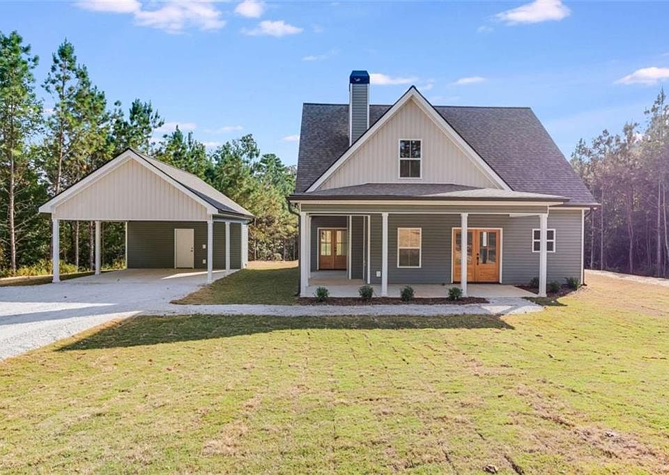 ***Builder is willing to buy down your interest rate with an accepted offer!*** Situated on 4 private wooded acres, this home is ready for its new owners! This home is approximately 16 miles from the Carrollton square and 8.5 miles from the Bowdon square. The home features an open concept layout with the primary bedroom located on the main floor. Three bedrooms are upstairs. The primary bedroom features beautiful tile in the shower and floor areas as well as quartz counters. Adjacent to the primary bathroom is a large walk-in closet. The upstairs bathroom is tiled with a double vanity and quartz counters. The kitchen features beautiful cabinets with soft close doors and quartz counters. Outside you'll find that the carport has an attached storage area. The 4 acre lot offers plenty of space for animals or any additional sheds!