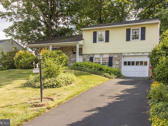 Lovely split-level home in Coventry Farms. Foyer entry with large coat closet leads into the sun filled spacious living room with large bay window. Formal dining room flows off the living room and kitchen making entertaining a pleasure. Eat-in kitchen features oak cabinetry, recessed lights and plenty of counter space. A few steps down is the inviting family room with floor to ceiling brick wood burning fireplace with mantel. Conveniently located is the laundry room with access to the one car garage. Upstairs are 3 comfortable bedrooms with plenty of closet space. The primary bedroom offers two closets and a separate bath with shower stall. Completing this level is the full hall bath with tub/shower and linen closet. There is a full unfinished basement offering plenty of storage. Conveniently located to Septa train, all commuting routes, major highways, Wegmans, restaurants & area parks.