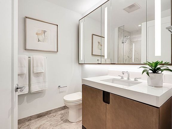 Enjoy this unique studio layout with sleeping alcove offering an open floorplan for living and dining which is perfect for entertaining. This home features dramatic floor to ceiling windows with eastern exposure. This home also offers European white oak floors, Thermador and Bosch appliances with panelized refrigerator and dishwasher, and customized Italian kitchen cabinetry. The bathroom features quartz countertops and an expansive shower with glass enclosure. The Quinn brings a new standard of living. Building amenities include an indoor lap pool, sauna, and an 8,000-sf fitness center, squash court, billiards room, game room, work lounge, and landscaped roof terrace with dining and outdoor BBQ and kitchens areas. Multiple lounges provide space to relax and entertain.