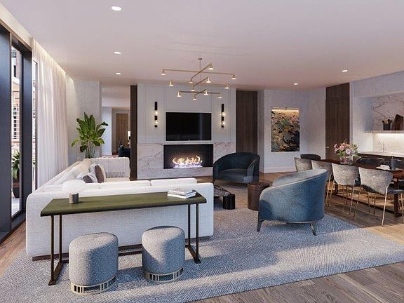 Live at the Quinn Condominiums in a spacious 1-bedroom 1-bathroom home offering an open floor plan, featuring a Chef's kitchen with breakfast bar and top of the line appliances. Perfect for entertaining. This beautiful residence includes dramatic floor to ceiling windows, marble bath, custom closets and window treatments. This unit includes a newly mounted flat screen TV with soundbar. WiFi is included in the rent. The building amenities include an indoor lap pool, sauna, and an 8,000-sf fitness center with squash court, a billiards room, game room, and a landscaped roof terrace with private dining and BBQ areas. Multiple lounges provide space to relax and entertain.