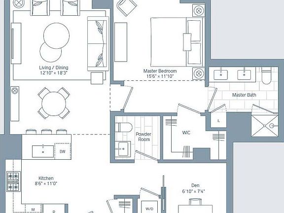 Welcome to The Quinn-immediate occupancy available! Relax in your thoughtfully designed 1-bedroom+ den home featuring a stunning powder room with custom gun metal finishes and full height tile accent wall. This home offers a flexible floor plan with a den that can be transformed to meet your lifestyle. Floor to ceiling windows, Sub-Zero and Wolf appliances, wine refrigerator, and a marble master bathroom with radiant-heated floors and dual vanity make this unit a true standout. The Quinn brings a new standard of living to the South End. A suite of hospitality-focused services offers everything from personal errands to private event coordination, so you can live effortlessly. Building amenities include an indoor lap pool, sauna, and an 8,000-sf fitness center with a bouldering wall and squash court, a billiards room, game room, children's playroom, and a landscaped roof terrace with dining and BBQ areas. Multiple lounges provide space to relax and entertain.