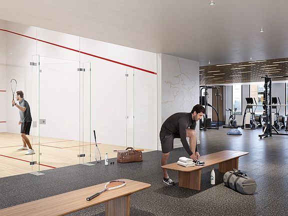 Welcome to The Quinn! Model homes are now open! Take in iconic views of the Boston skyline from your 3-bedroom 2.5-bathroom home featuring a gas fireplace with Calacatta stone surround. This home includes Sub-Zero and Wolf appliances with double wall ovens and a full height wine refrigerator, a five-piece master bath with radiant heated floors, and an en-suite secondary bath. The Quinn brings a new standard of living to the South End. A suite of hospitality-focused services offers everything from personal errands to private event coordination, so you can live effortlessly. Building amenities include an indoor lap pool, sauna, and an 8,000-sf fitness center, squash court, a billiards room, game room, children's play room, and landscaped roof terrace with dining and BBQ areas. Multiple lounges provide space to relax and entertain.