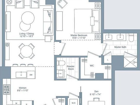 Welcome to The Quinn-immediate occupancy available! Relax in your thoughtfully designed 1-bedroom+ den home featuring a stunning powder room with custom gun metal finishes and full height tile accent wall. This home offers a flexible floor plan with a den that can be transformed to meet your lifestyle. Floor to ceiling windows, Sub-Zero and Wolf appliances, wine refrigerator, and a marble master bathroom with radiant-heated floors and dual vanity make this unit a true standout. The Quinn brings a new standard of living to the South End. A suite of hospitality-focused services offers everything from personal errands to private event coordination, so you can live effortlessly. Building amenities include an indoor lap pool, sauna, and an 8,000-sf fitness center with a bouldering wall and squash court, a billiards room, game room, children’s playroom, and a landscaped roof terrace with dining and BBQ areas. Multiple lounges provide space to relax and entertain.
