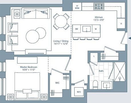 Welcome to The Quinn! Unwind in your spacious 1-bedroom 1-bathroom home offering an open floorplan for living and dining which is perfect for entertaining. This home features dramatic floor to ceiling windows and an expansive kitchen for entertaining. This home also offers European white oak floors, Thermador and Bosch appliances with panelized refrigerator and dishwasher, and customized Italian kitchen cabinetry. The bathroom features quartz countertops and an expansive shower with glass enclosure. The Quinn brings a new standard of living. Building amenities include an indoor lap pool, sauna, and an 8,000-sf fitness center, squash court, billiards room, game room, work lounge, and landscaped roof terrace with dining and outdoor BBQ and kitchens areas. Multiple lounges provide space to relax and entertain.