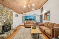 Large deckExpansive kitchenSpacious bedroomsEnclosed sunroomHuge islandPrivate master suiteWood stove insert