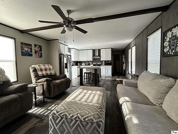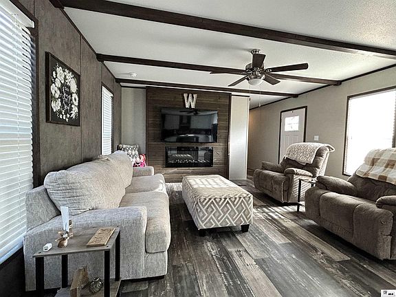 2023 manufactured home, that consist of 3 bedrooms and 2 baths situated on 8 acres of land with plenty of privacy. This home has beautiful kitchen, that overlooks the living room area with built-ins, that include an electric fireplace in the wall. All information is deemed reliable but not guaranteed.