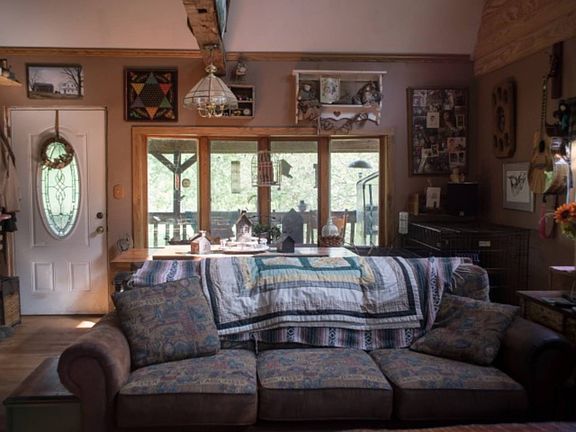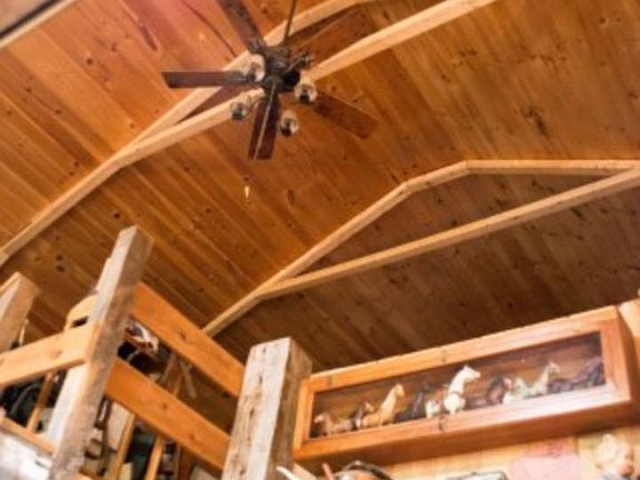 Hide-away at Home Located on 13.7 this custom built home with its open floor plan has a second floor loft bedroom overlooking the living room and dining room. The Bedroom has its own personal balcony with beautiful views of the countryside. Fruit trees are scattered thru out the property. Areas in the yard are plenty for relaxation, view your personal pond where the Koi and the bullhead come up to feed or take a rest under the trees. The property includes several out building such as barn, machine shop, and wood shop. If your looking for privacy this is for you.