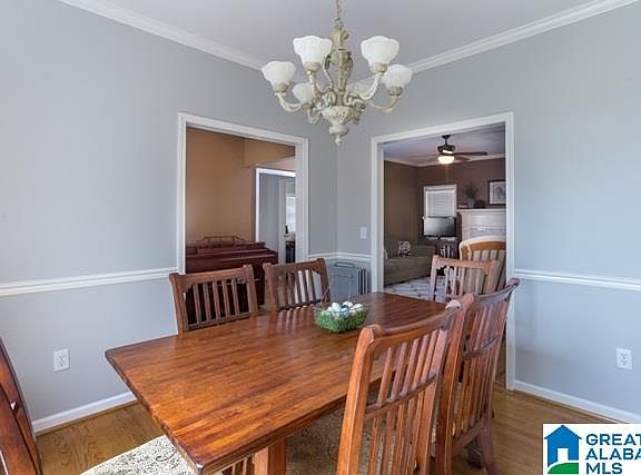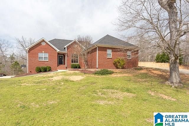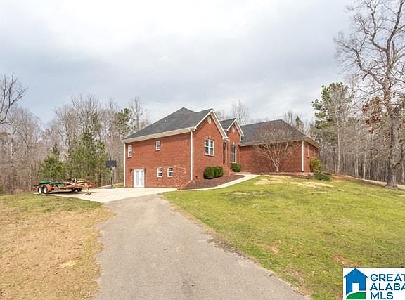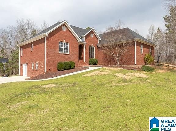 This full brick beauty has it all! Nestled on 5.75 +/- acres, this home offers the peace and quiet of country living with the big city only 15 minutes away. There is a 2 car main level garage. Main level features 3 bedrooms, 2 and a half baths, eat-in kitchen with separate formal dining, hardwoods throughout, covered & screened deck, and many extras. There is an attic walk-up that allows for plenty of storage space or future room additions. The basement offers open living space with an office. a 1/2 bath and play area for kids. Kelly creek runs along property line. Definitely a lot of home for the $$$! Home is in Cook Springs even though address is Pell City. Special note: There is a sign in the front yard.