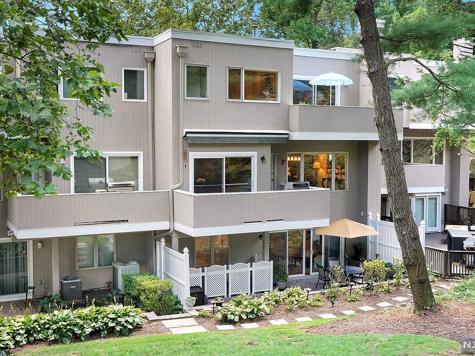 Spectacular townhome nestled in the private, gated community of Kenwood Estates. Occupying approx. 3700 sq ft of living space over three levels, some of the luxurious amenities include an elevator and outdoor space on every level. Inviting entry foyer w/L-shape staircase leads to open concept living and dining rooms, home office and eat-in kitchen with stainless steel appliances, incl. Viking oven and cooktop, new LG refrigerator and granite countertops. Upstairs hosts stunning primary BR Suite w/gas fireplace and sliders to terrace. Two add'l generous sized BRs, one full bath and two hallway skylights complete this level. Ground floor features family rm w/ gas fireplace, fourth bedroom, full bath and sliding doors to paver patio. Hardwood flooring and abundant closets throughout. Lushly landscaped community offers serene hilltop heated pool and a ring front camera security system. Plans in place for fitness center/game room. This private oasis is close to all; minutes to GWB.