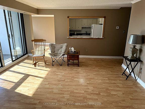 This 11th floor spacious apartment with balcony looking to the unobstructed views and skyline of south of the city and downtown. Comfortable layout of 1200 sqft with the bedrooms far from the living area. Open kitchen, dining and a huge living room with patio door from living to big balcony with the exceptional views. Master bedroom with two closets and 4 pcs ensuite bathroom. Good size second bedroom served by the second 4 pcs bathroom. ensuite washer and dryer. Freshly Painted. Included in condo fees (heat, hydro, water, cable TV and fast Internet). In unit forced air furnace and AC. Building has control entry, gym, indoor pool, party room, sauna and rooftop patios for your enjoyment. Underground parking space is also included.