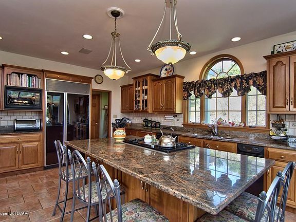 Stunning describes this impressive 2 story w/views from every room - Architectural design which features gourmet kitchen w/patio doors out to deck. Custom design charcoal outdoor fireplace on deck. Office w/built-ins, finished LL w/2nd kitchen, FR w/French doors out to rear yard - 4 car garage - LL can be separate living quarters.