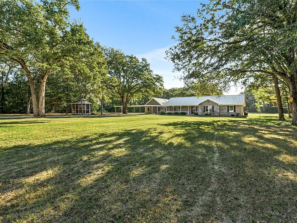 Less than 1 hour east of Waco, a recently refreshed 4 bedroom, 3 bathroom home with 2 livings areas is waiting for you. This property is nestled in a beautiful area surrounded by lovely properties and landscape on over 4 beautiful, partially wooded acres of its own. New paint, new flooring, new bathroom features, new hot water heaters, 1 new AC, and recently updated windows and kitchen featuring stainless steel appliances. With 2 carports, one of which is perfect for your travel trailer or RV, a large shop on slab, and a charming, detached gazebo to enjoy the views from - country living is calling!