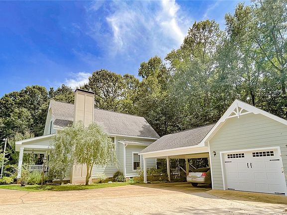 Custom built home by Russell Watkins (2004) sitting on 1.31 partially wooded acres 25 miles from Auburn. Property borders tranquil stream that flows into Lake Harding. Home boasts many unique features, hand-carved mantel and beautiful custom-made stained-glass windows set in dining room walls. Master bedroom and bath on Level 1, two bedrooms and full bath on Level 2. Nine-foot ceilings, propane gas-insert in living room from GreenSmart with radiant heat and blowers. Pre-finished hardwood in foyer, hallway, living and dining rooms. Outside features include two-car carport (23x20), a garage (14x20) and shop/storage (16x14). Beautiful secluded stone patio area under trees, screened in back porch/deck overlooking fern-lined path leading to stream that flows into Lake Harding. JUST MINUTES FROM LONG BRIDGE and PUBLIC ACCESS TO LAKE HARDING! Approximate commute time to Columbus-36 minutes; Auburn-36 minutes; Opelika-28 minutes. Contact Martha Shepherd for showing and alarm code.
