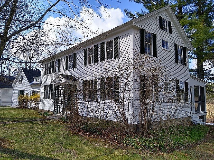 **We will only answer inquiries about the house at this phone number: (603-533-5152).** 1818 Colonial located in Jaffrey Center historic district. Two large 2nd floor bedrooms each with en suite bathrooms; library on 2nd floor landing area; formal dining and living room (all these rooms w/ pumpkin pine flooring); large kitchen-breakfast area w/ abundant cabinetry and counter space; adjoining deck and screen porch overlooking conservation meadow. 364sf semi-finished ell between barn/garage and house; summer “loft bedroom”. Good privacy for Main St location w/ historic firehouse/museum to the west and gardens, antique cellar hole and woodlands to the east. Immediate occupancy available.