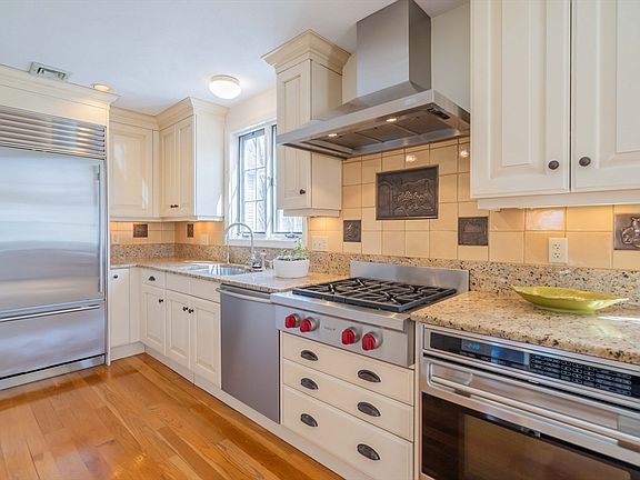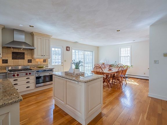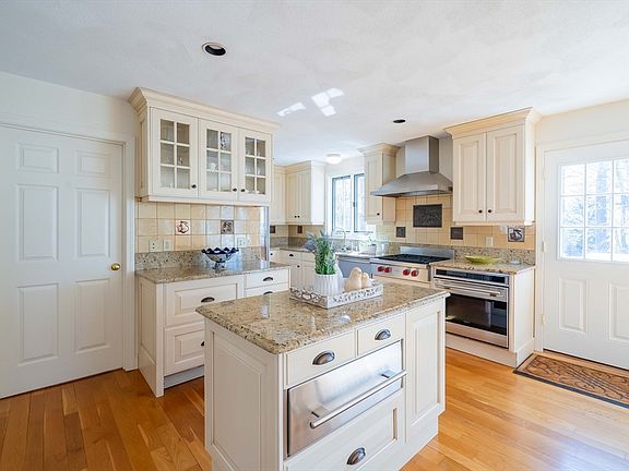 Perfectly set in a desirable Lexington neighborhood within walking distance to schools, conservation trails, and Old Res beach, you will love this immaculate, expanded Cape with a flexible, open concept floor plan for comfortable living/entertaining. The current owners have meticulously cared for and added many updates to this charming home throughout the years. The stunning, open concept kitchen and flexible family/dining room featuring custom cabinetry, granite countertops, a center island, and high-end SS appliances including the Wolf range, SubZero refrigerator, beverage fridge, fridge/freezer drawers, warming drawer, and Miele dishwasher. A glass slider opens to the deck, a great place to soak up a little sunshine while enjoying the surrounding backyard. Relax in the inviting primary suite with a vaulted ceiling, skylight, brand new carpeting, a dual sink vanity and Jacuzzi tub/shower. Enjoy the newly carpeted recreation room and bonus playroom on the finished walkout lower level