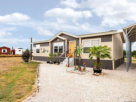 Step into a home that feels brand new and completely move-in ready in the heart of Carrizo Springs, TX. This beautifully updated 3-bedroom, 2-bath double-wide offers modern style, thoughtful upgrades, and the convenience of being sold fully furnished so you can start enjoying it from day one. Every detail has been refreshed, from the brand-new metal roof and upgraded flooring throughout the entire home, including the bathrooms and closets, to the stylish new wall finishes and updated water heater. The kitchen comes fully equipped with brand-new appliances including a stove, refrigerator, washer, and dryer, making daily living a breeze. Comfort is a top priority with the upgraded air conditioning system featuring an antiseptic quartz treatment that keeps your air feeling fresh and clean. Inside, you'll love the inviting layout with a separate living and dining area, a center island kitchen that's perfect for cooking or casual dining, and a spacious primary suite with a walk-in shower and relaxing soaking tub. Outdoors, a covered deck patio invites you to unwind or entertain, while the large backyard provides endless opportunities to garden, add a pool, or simply enjoy the open space. A storage shed is also included for convenience. Best of all, this property is tucked into a quiet neighborhood just minutes from a secluded entrance to the Espantosa River, where you can spend your weekends fishing or relaxing by the water. With its modern upgrades, furnished interior, and peaceful location, this home truly has it all. Don't miss the chance to call this inviting property yours. Schedule your showing today before it's gone!