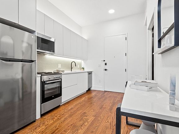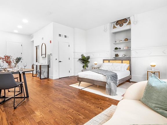 Welcome to The Bridget! A One of a kind, adaptive reuse 44 unit luxury residential project of a stunning historic landmark nestled in the heart of downtown Jersey City. This exceptional studio invokes the spirit of the site's previous life as St. Bridget's church. - - - Original building elements such as the slate roof, stained-glass windows and other architecturally significant aspects are restored and enhanced; the ideal complement to the contemporary, refined design within. - - - This unit includes 5" oak plank flooring, over 10' ceilings, central HVAC, in-unit washer/dryer, and a classically monochromatic color palette that enhances the uniqueness of their revered historic features. - - - Custom matte white cabinets are accented by penny tile backsplash and polished Caesarstone countertops. Stainless steel appliances including a sink with a matte black Rigo faucet, refrigerator, dishwasher, electric range and hood complete these well composed kitchens. - - - Select amenities include bike storage, an indoor lounge area, also ideally suited as a co-working space as well as a fully equipped state-of-the-art fitness center. - - - Well situated in a cozy pocket of Historic downtown Jersey City, this appealing neighborhood, blocks away from the Hudson River waterfront, restaurants, museums, nightlife, great shopping and parks which includes Liberty State Park, the Hudson River's crown jewel, and Van Vorst Park an historic gem utilized by an active community for farmers markets and a myriad of events. - - - Efficient access to Manhattan and elsewhere is close by at the Grove Street PATH stop, another enticing spot with pedestrian-only walkways, restaurants and shopping options.
