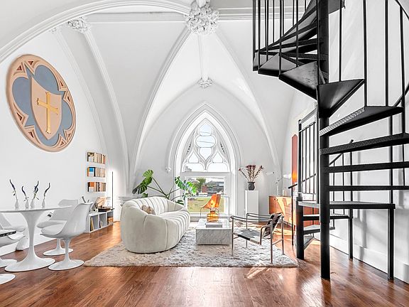Welcome to The Bridget! A One of a kind, adaptive reuse 44 unit luxury residential project of a stunning historic landmark nestled in the heart of downtown Jersey City. This exceptional one bedroom duplex invokes the spirit of the site's previous life as St. Bridget's church. - - - Original building elements such as the slate roof, stained-glass windows and other architecturally significant aspects are restored and enhanced; the ideal complement to the contemporary, refined design within. - - - This unit includes 5" oak plank flooring, over 13' ceilings in the living room, central HVAC, in-unit washer/dryer, and a classically monochromatic color palette that enhances the uniqueness of their revered historic features. - - - Custom matte white cabinets are accented by penny tile backsplash and polished Caesarstone countertops. Stainless steel appliances including a sink with a matte black Rigo faucet, refrigerator, dishwasher, electric range and hood complete these well composed kitchens. - - - Select amenities include bike storage, an indoor lounge area, also ideally suited as a co-working space as well as a fully equipped state-of-the-art fitness center. - - - Well situated in a cozy pocket of Historic downtown Jersey City, this appealing neighborhood, blocks away from the Hudson River waterfront, restaurants, museums, nightlife, great shopping and parks which includes Liberty State Park, the Hudson River's crown jewel, and Van Vorst Park an historic gem utilized by an active community for farmers markets and a myriad of events. - - - Efficient access to Manhattan and elsewhere is close by at the Grove Street PATH stop, another enticing spot with pedestrian-only walkways, restaurants and shopping options. - - - NO FEE!