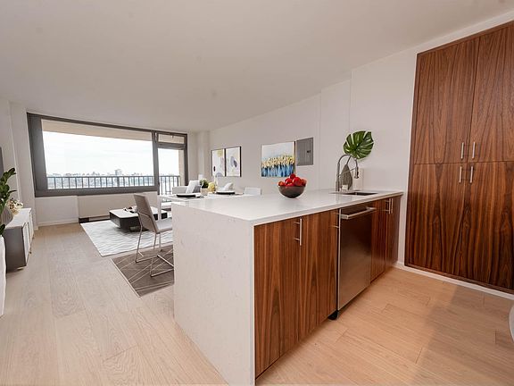 Fabulous 1 bedroom 1 bathroom unit on the 9th floor - DIRECT, UNOBSTRUCTED NYC VIEWS! This unit has been completely gut-renovated with TOP QUALITY finishes and materials! Open-Concept Kitchen with Waterfall Quartz Countertop, SS appliances, and European Style custom cabinetry. Large combo Living / Dining Room leads to huge balcony that is East-Facing. Incredible view. Wall of Custom Closets line entire bedroom wall. Troy Towers is a full-service luxury building with 24 hour doorman, amazing POOL overlooking NYC, Amazon Hub delivery box, GYM, laundry on each floor, and free storage on each floor. NYC bus at your front door plus FREE rush-hour shuttles to PATH, light rail and Ferry. This building is pet friendly with 1 dog allowed per unit, Cats ok! Do not miss this.
