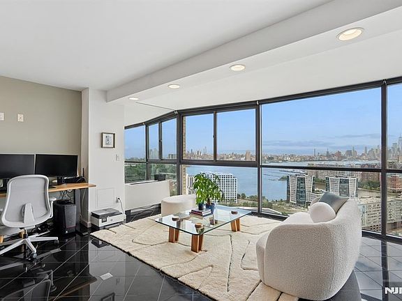 Step into one of the largest 2-bedroom layouts at Troy Towers—fully renovated and ready to impress. This spacious 2-bedroom, 2-bath home features panoramic, unobstructed views of the New York City skyline from every room. A dramatic wall of windows in the living area fills the space with natural light and brings the skyline right into your living room. The open-concept kitchen flows seamlessly into the main living space—perfect for both relaxing and entertaining—while the primary suite offers a walk-in closet and a full en-suite bath for your comfort. Enjoy a full-service lifestyle with amenities including 24-hour security, concierge service, an Amazon Hub, laundry on every floor, dry-cleaning pickup, and a newly renovated pool and fitness center. On-site parking is available for an additional fee of $165. The maintenance fee covers all utilities—central AC, heat, water, electricity—as well as cable and internet. NYC buses and complimentary PATH shuttles leave directly from the front door during weekday mornings, making commuting effortless.