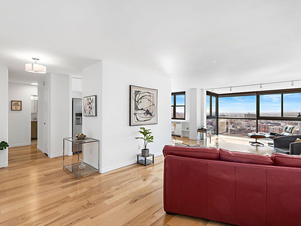 Largest 1-bedroom in Troy Towers, panoramic high floor view, incredibly sunny! You’ll feel the love as you enter this bright, spacious home with the most desirable layout in the building, featuring an L-shaped living/dining area and atrium-like alcove providing lots of space for sky-gazing, entertaining, relaxation, and room to roam. The apartment has bright, blond oak wood flooring throughout the living areas, updated kitchen and bath, and five closets to keep your space organized and stress-free. An opening foyer provides a graceful entry, and closeted hallway offers privacy for sleeping area. The extra-large bedroom can accommodate a king-size bed and customary furniture suite, and allows you to wake up gently to morning sun filtered through included solar shades, or draw the blackout shades for peaceful sleeping in. One of the most sought-after buildings on the Palisades, Troy Towers is undergoing an exciting new facelift, with new hallway renovations throughout and a stunning new architect-designed outdoor pool area and recreation lawn. This hot “West Hoboken” building is pet-friendly and features 24-hour security and concierge, gym, Amazon hub, dry cleaning pickup service, and laundry on every floor. On-site garage parking is readily available at $150/mo. Maintenance includes real estate taxes, high-speed Internet, cable TV service including HBO and Showtime, and all utilities - central air, heat, water, and electricity. NYC buses and free PATH shuttles leave from the front door during rush hour; five-minute drive to the Lincoln Tunnel, Hoboken, and waterfront restaurants. Parks and shopping are nearby including Whole Foods, Trader Joe's, Lidl, Aldi, Shop-Rite, Walgreens and more. It’s the "best-kept secret on the Hudson." (Note: Initial purchases must be owner-occupied for a minimum of two years. Please also note, square footage quotes are not provided by the building, so estimated quotes for similar units may be inconsistent or inaccurate. Please request original floor plans to compare similar units side by side.)