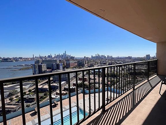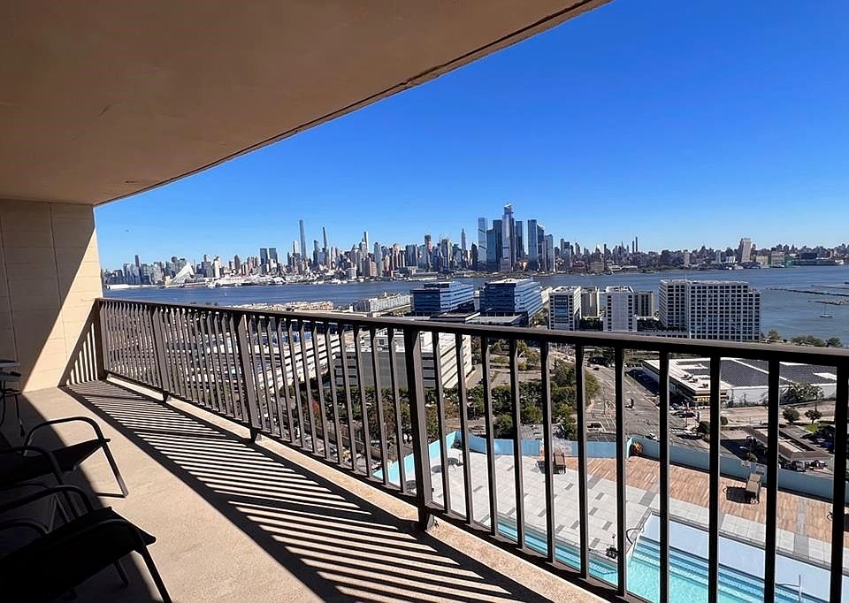 First half month rent free! All utilities included! Drop-dead New York City Views from each room, and picture windows to take it all in. Step out onto your huge private terrace and be mesmerized by panoramic views of the iconic Manhattan skyline and never-ending river action. This renovated unit has extra-large bedroom, brand-new luxury vinyl wood-look floors, brand-new kitchen, updated bath, and four roomy closets Building offers free outdoor pool access, garage parking and gym at reasonable additional fee. Rent includes high-speed Internet, cable TV service including HBO and Showtime, and all utilities - central air, heat, water, and electricity. Transportation is easy from this hot "West Hoboken" location with NY/Port Authority buses at front door during rush hour and free morning shuttles to Hoboken PATH station. Building has 24/7 concierge and security, garage parking available for $165/month and fitness center for $240/year. Weekday dry cleaning pickup/drop-off service available from front desk, laundry room on every floor. Amazon Hub located on lobby level. Hallways are newly renovated and entire pool area has been completely renovated with further upgrades and amenities being added for 2025 season. Board approval is required but easy; please allow up to 2 weeks for process. Sorry, no smoking in unit; one small pet OK.