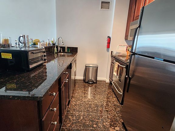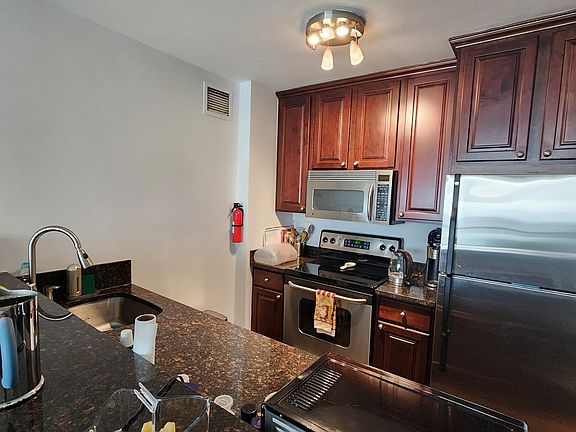 Your chance to rent in the wonderful Troy Towers. Elevator building with pool, doorman, gym, library, and community room. Jaws will drop as you step into this lovely apartment and gaze at the windows showcasing the magnificent New York City skyline and Hudson River. Stainless steel appliances in the kitchen and open floor plan into the living room. Bedroom provides tons of natural light with huge window overlooking the city. Enjoy your balcony off the living room as you get full panoramic views of the city. NYC buses leave from the front door during rush hour. electricity, water, heat included in rent. gym paid through january with option to renew.