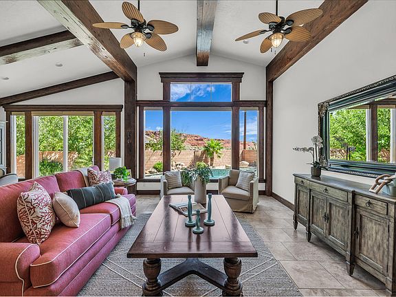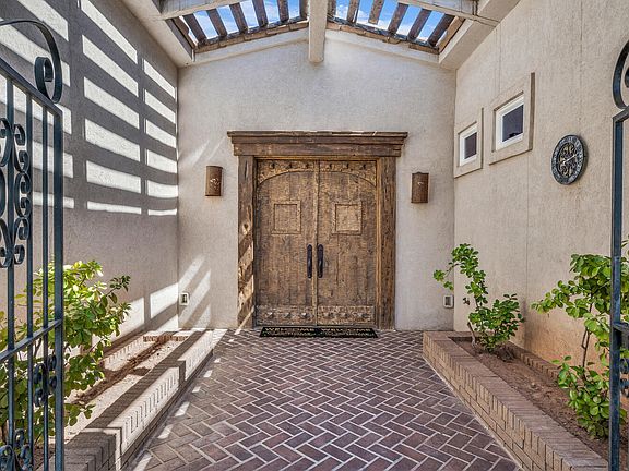 This home is brimming with character and charm, with in-ground pool and red rock views. A gated courtyard with brick detailing and a carved wood entry door sets the tone, leading to warm interior spaces with exposed wood beams, a stone fireplace, travertine floors, and textured finishes. The kitchen offers granite counters, stainless appliances, and an induction cooktop, while two main bedrooms each have private en-suite baths. A separate casita adds flexibility for guests, extended family, or office use. The backyard is designed for both fun and relaxation, featuring a heated pool, spa, fire pit, and outdoor kitchen/BBQ—all oriented to take in the views, and 2-car garage with a 50-amp EV charger.