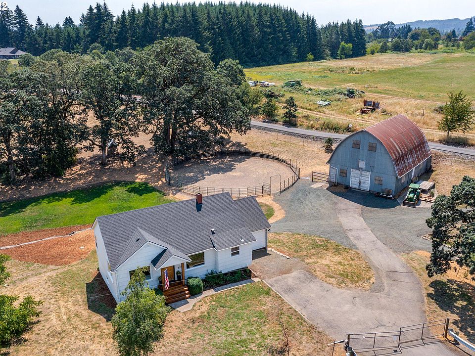Imagine living the farm life in the heart of Oregon wine country in this fully updated farmhouse on 5acres w/ 3-stall Gothic barn. New septic,roof,windows,plumbing,propane furnace & updated electrical. Admire the views of the pond, fruit trees & grape vines from the primary bedroom w/ ensuite bath & walk-in closet. Updated country kitchen w/ butcher-block countertops, SS dishwasher, hood & orig. stove. Refinished maple Floors. Daylight basement incl. 2bd 1ba, living room, office & Laundry.