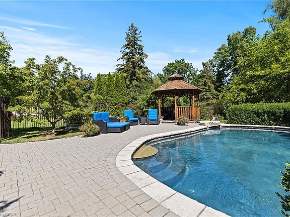 Enjoy luxury living with sophisticated style on one of Old Towns most desirable streets. This custom-built home blends timeless elegance with modern comfort. Nestled on over a third of an acre, the 4,500+ sq. ft. (above grade) residence features 6 bedrooms and 6 bathrooms, all finished with exceptional attention to detail.The chefs kitchen is the heart of the home, with premium Miele appliances including a coffee bar, steam oven, and warming oven, plus a large granite island and walk-in pantry. Walls of floor-to-ceiling windows flood the home with natural light, most strikingly in the stunning living room. Natural cherry hardwood flooring, custom millwork, and high-end finishes flow throughout, creating a warm, sophisticated atmosphere. The elegance extends to the formal dining room. A main-floor in-law suite with its own living room, fireplace, private deck, and separate entrance provides flexibility for guests or extended family.The showcase staircase leads upstairs to four bedrooms. The primary suite offers a spacious retreat with a double-sided fireplace, spa-like ensuite, and dressing room. A versatile bedroom with built-in shelving and Murphy bed adds further function, and a convenient second-floor laundry complements the layout. The semi-finished lower level includes radiant heated floors for year-round comfort.Car enthusiasts will appreciate the heated triple garage with nearly triple the height of a standard garage, plus a private suite above with separate entrance and full bathideal for guests, an office, or rental. The custom driveway accommodates up to 14 vehicles.The backyard is a private oasis with gorgeous landscaping, mature trees, and multiple decks overlooking the concrete saltwater pool with waterfall, styled to resemble a natural pond. This one-of-a-kind property captures the best of luxury living in beautiful Niagara-on-the-Lake.