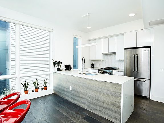 Live the life you desire! This unique layout, high-ceiling, and over-sized one-bedroom condo apartment has a long window line with abundant natural lights from 7 floor-to-ceiling windows. It is designed with remarkable finishes and luxury details including sandsational gray oak floors, modern sleek cabinetry, mosaic backsplashes, and Carrara Grigio quartz countertop, all high-end appliances, and Philips lighting; central air/heat and walk-in closet, in-unit washer/dryer; an open floor plan with additional space for work-from-home. The bathroom is finished with European tile, state of the art fixtures include rain showerheads, Robern vanities. This 3-year old elevator building offers 15F-exempt tax abatement. It has only 45 units from 2nd to 6th floor. The first floor is a warm lobby with stroller room, secured package room, and bike room. The virtual doorman has kept this boutique building easy-access and low HOA fee. The amenities include a rooftop green and garden, outdoor screen room, BBQ grill area with views of Manhattan skyline and Jersey City downtown. It’s an ideal place for entertaining and enjoying the beautiful sunrise on the east; the fabulous sunset on the west. Children's playroom, and 24-hour state of the art fitness center are steps away from the rooftop deck; near Hamilton Park, Path train to NYC, JCD pedestrian walkway, shops and restaurants.