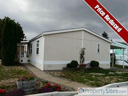 Fleedwood MFH on leased land. Home features newer paint and heat pump, landscaped fenced yard with new storage shed, covered parking area and is located at the end of a dead end street. Does not have to be owner occupied!