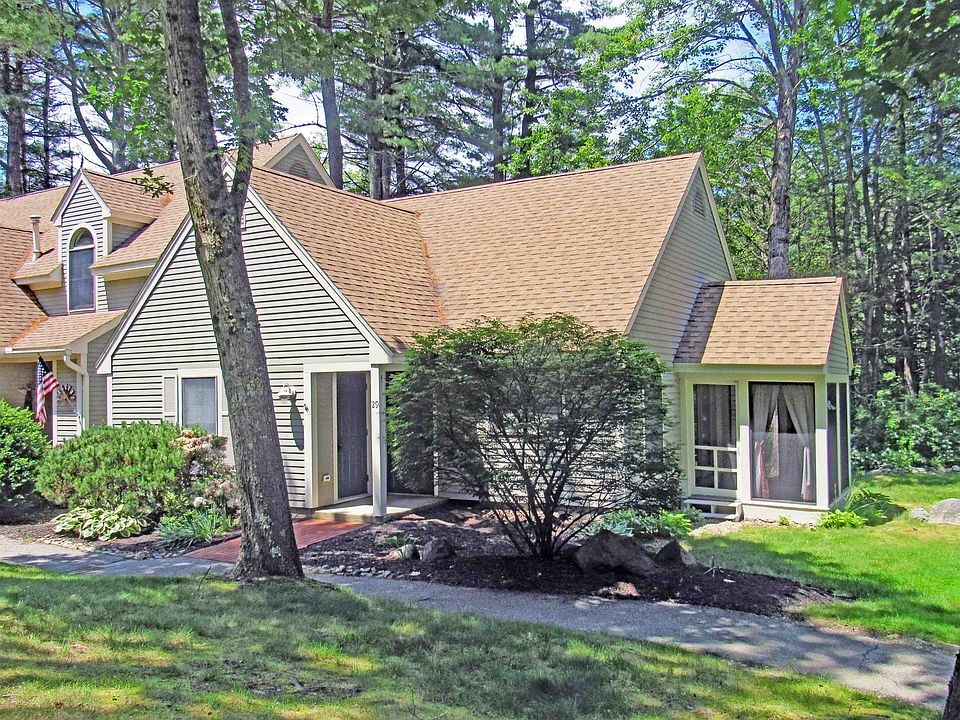 Wooded Retreat Meets Everyday Convenience – Rare Offering at Cedar Ridge Here’s your chance to own a very rare one-story end unit in the sought-after Cedar Ridge community—with serene pond views and room to grow. This move-in-ready 2-bedroom, 2-bath condo blends the tranquility of a wooded retreat with the everyday ease of low-maintenance living—just minutes from shopping, beaches, downtown Portsmouth, and more. Inside, a bright and updated kitchen with granite countertops, stainless steel appliances, and a casual high-top bar opens seamlessly to the sun-filled living and dining areas. Step through sliding doors to a cheerful screened-in porch, the perfect spot to relax with a morning coffee or evening drink while taking in peaceful views of lily pads and wildlife. The main level features a primary suite with a walk-in closet, a second bedroom and full bath for guests or office use, and lovely views of the woods and pond that bring the outdoors in. There is also a relaxing screened porch to enjoy summer breezes on. But there's more—this thoughtful owner added a second-floor office/artist loft with built-in bookshelves and a dedicated desk or craft nook, ideal for quiet work, creative space, or a cozy reading hideaway. Plus, a bonus storage room offers the flexibility to expand or organize as you see fit. Outside, shade gardens beneath mature trees create a private and cool retreat all summer long, offering beauty, comfort, and privacy.