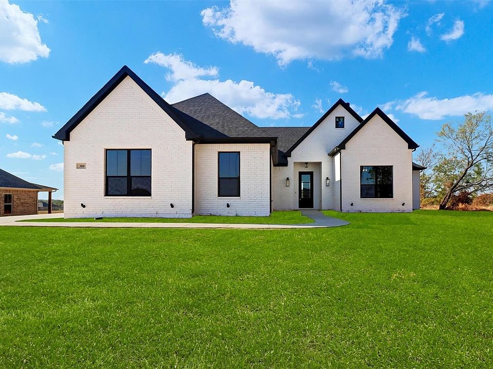 Home with an open floor plan with split bedrooms, 2127 sq ft 3 bed, 2 bath, 2 car garage sitting on .58 acres. Exterior black & white concept with Cathedral ceiling in living area with wood burning fire place. This high end spec custom home has gorgeous craftsmanship of crown molding, large granite island, custom painted shaker style cabinets, SS appliances, with a huge pantry! Triple crown in primary bedroom, primary bath has a garden tub & separate tile shower, huge primary closet with a door leads into the utility room with custom cabinets. Second bathroom with a large shower with beautiful tile. Nice covered back patio to entertain! Will come with sod, bushes and sprinkler system once water restrictions are lifted. High Speed Internet available. Located 30 minutes from Fort Worth Alliance. Paradise ISD-A rated school district. Come check out this beautiful home!!